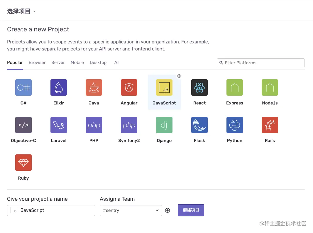 1.创建项目 - 根据使用语言选择项目类型,eg:Javascript