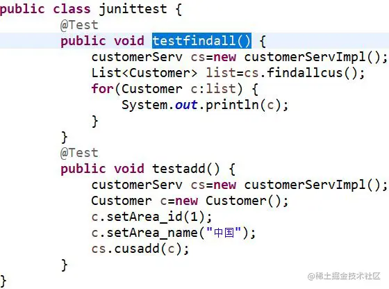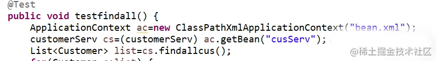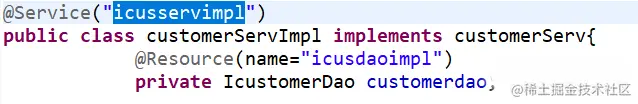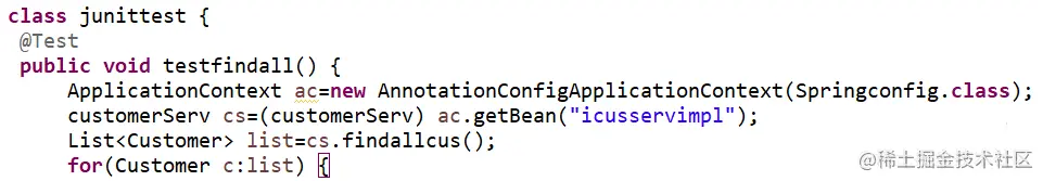 这里面的bean标签是为该方法命名,等同于xml配置文件;接下来从测试类调用icusservimpl,
