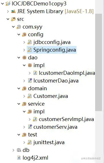 这是该项目的包情况,其实在config下只需要一个类就可以了,但我新建了一个空类Springconfig和一个配置类jdbcconfig,目的是配合一个注解@import,