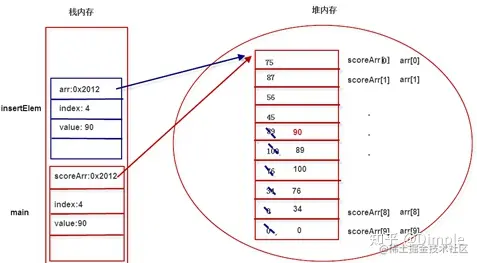 使用数组作为方法的形参,这还是第一次。内存分配图如图所示: