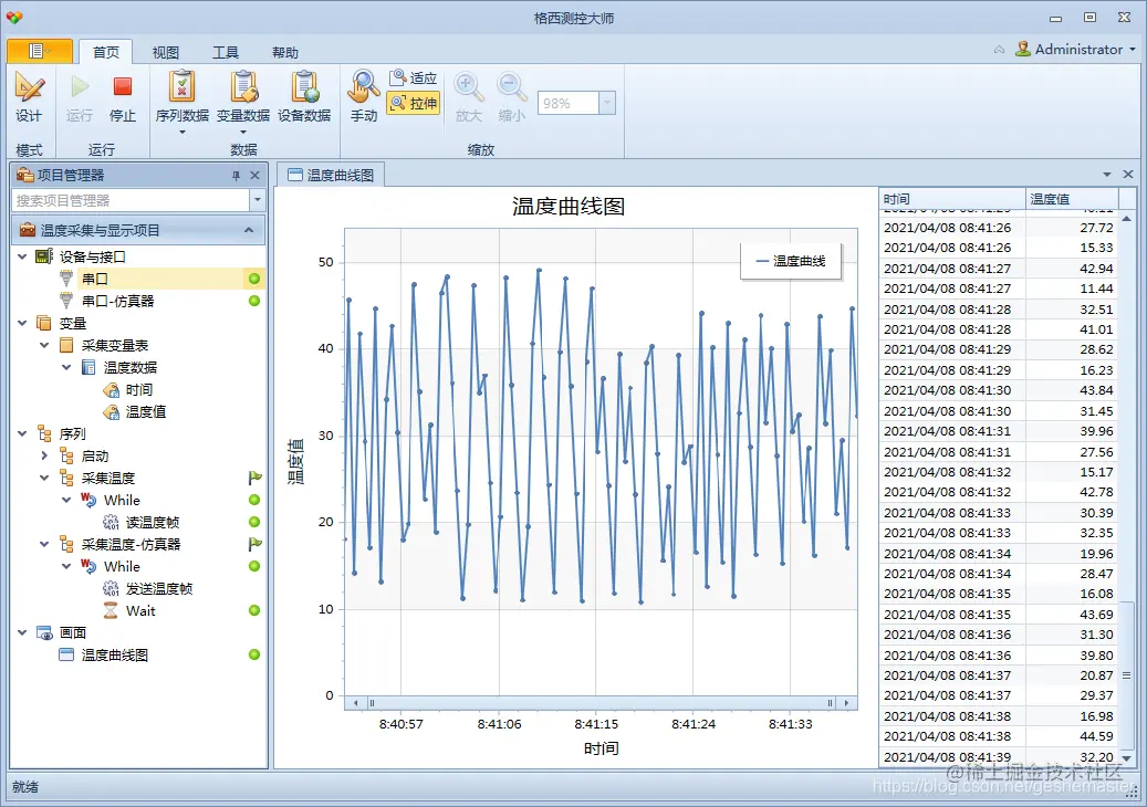 本例子上位机使用格西测控大师编写,最终效果如下图所示。