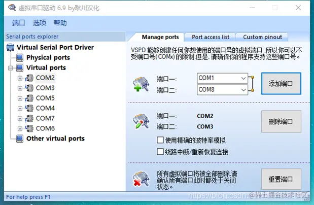本例子的传感器模块是串口通信的,故在仿真时我们选择用虚拟串口软件(VSPD虚拟串口软件)虚拟一对串口来实现仿真程序和实际程序的对发。