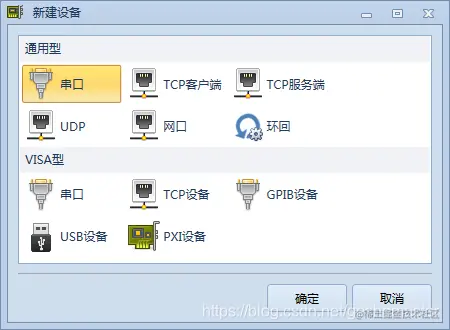 弹出新建设备对话框中,选择“串口”,点击“确定”。