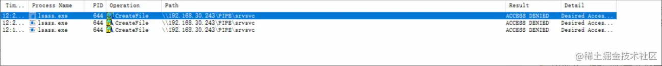 当指定格式为\IP\C$的时候,lsass.exe服务就会去访问\IP\pipe\srvsrv