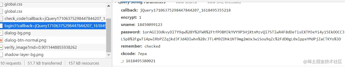 知道加密是登陆使用的密码,所以直接找登陆请求,目的明确的定位里面的加密参数 password