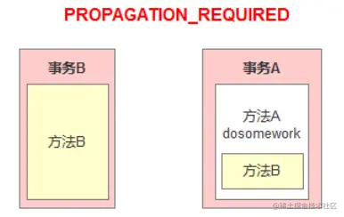 - 当调用 methodA 时,methodB 加入到 methodA 的事务中,事务的执行。