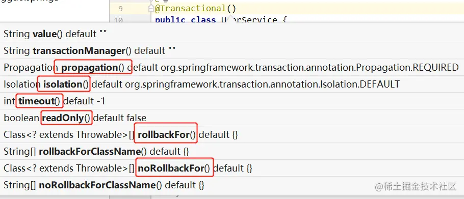 @Transactional() 注解里有不少参数,其中我们常用到的如下: