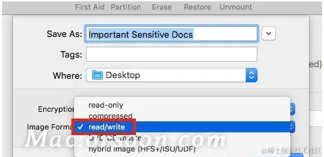 某些项目太重要而不能应用一些额外的安全级别。这可能包括需要保护需要发送给另一个用户的与工作相关的文件夹,对此的解决方案是使用磁盘工具从文件夹创建磁盘映像,该映像受密码保护和加密。