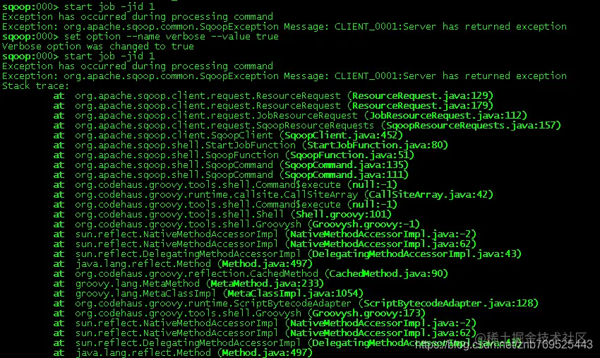 Exception:org.apache.sqoop.common.SqoopExceptionMessage: CLIENT_0001:Server has returned exception