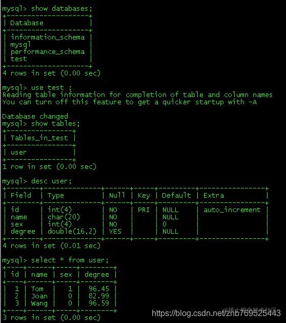 在上面导出的MySQL表中,主要是databases:test下的user表。
