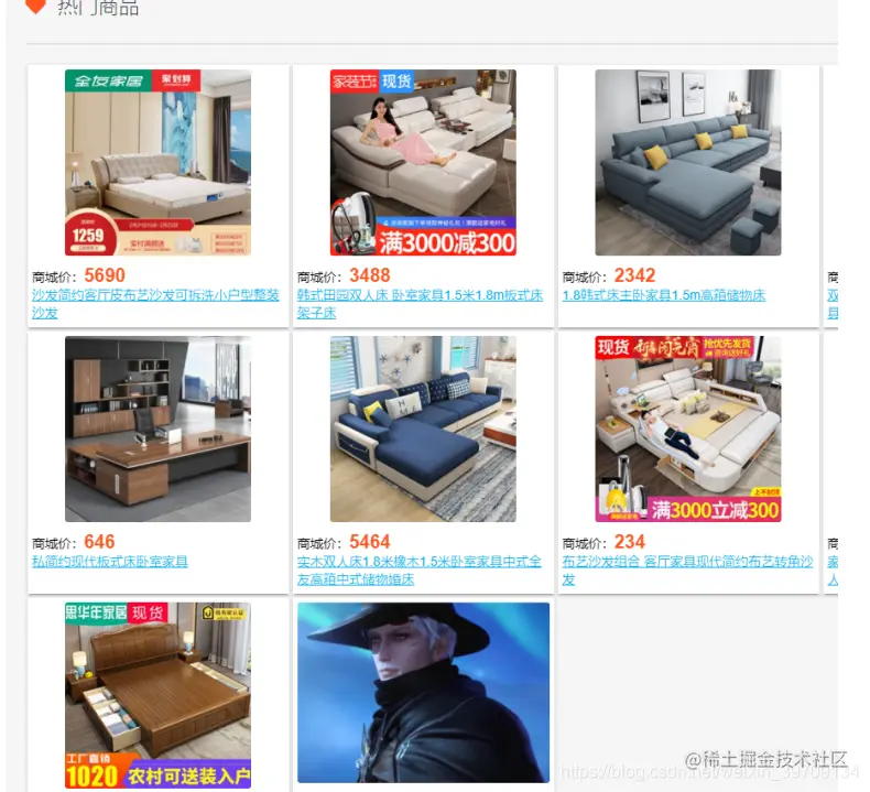 ①搜索商品操作: 当在 Search 栏输入想搜索的家居用品时, 会使用模糊查询, 搜索 出客户想到查询的家居用品。