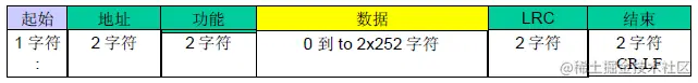 ASCII模式每个字节(10位)的格式为:1个起始位,7个数据位,1个奇偶校验位,1个停止位。偶校验是要求的,其它模式(奇校验,无校验)也可以使用。默认校验模式模式必须为偶校验。使用无校验要求2个停止位。