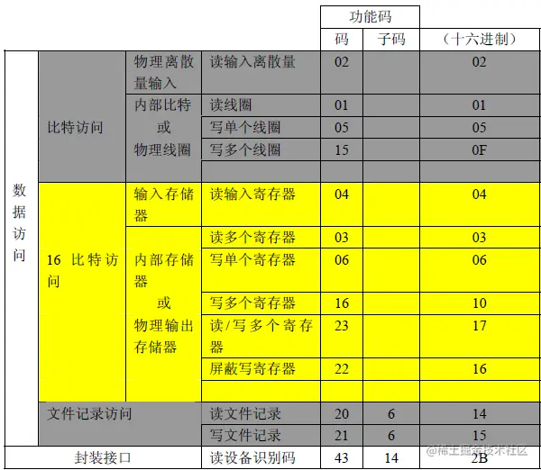 公共功能码:是较好地被定义的功能码,保证是唯一的,MODBUS组织可改变的,公开证明的,具有可用的一致性测试,MB IETF RFC 中证明的,包含已被定义的公共指配功能码和未来使用的未指配保留供功能码。