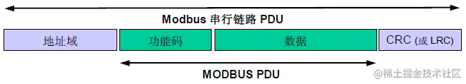 Modbus应用协议定义了简单的独立于其下面通信层的协议数据单元(PDU-Protocol Data Unit)。