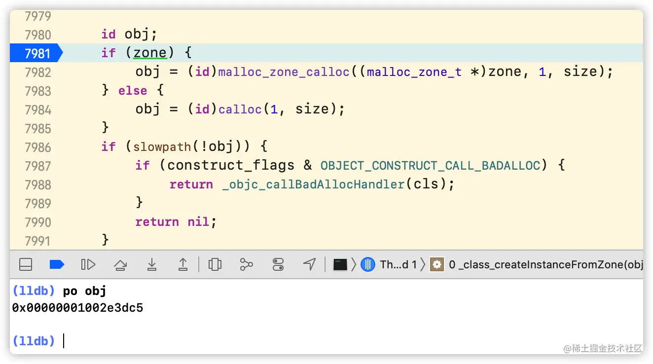 跟着_objc_rootAllocWithZone往下走。我们最终来到_class_createInstanceFromZone方法,