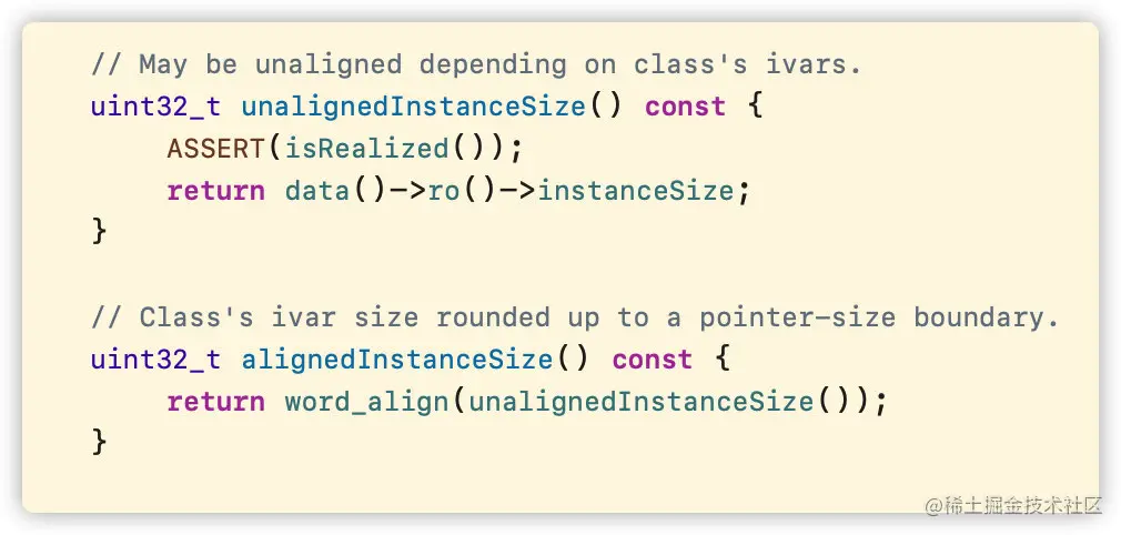alignedInstanceSize是由unalignedInstanceSize方法决定的,可以发现源码中unalignedInstanceSize最终取决于instanceSize实例变量的大小。