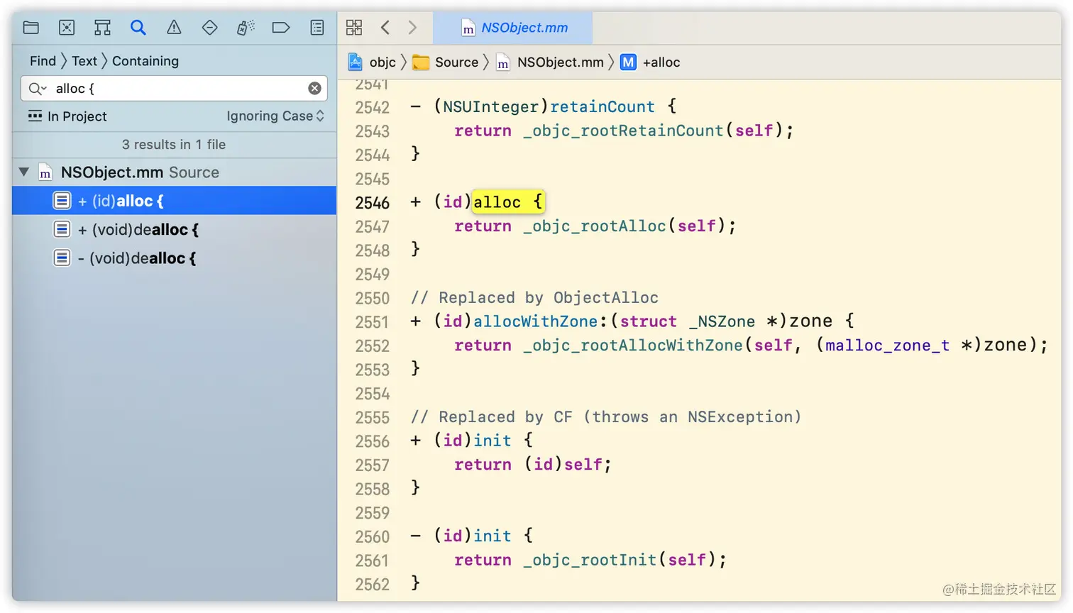 在日常开发中我们一般会按住command+点击进入相应的类或方法,但是点击alloc没有发现方法的具体实现,只看到方法的声明。这时我们该如何继续探索底层呢?下面介绍三种探索底层的方法