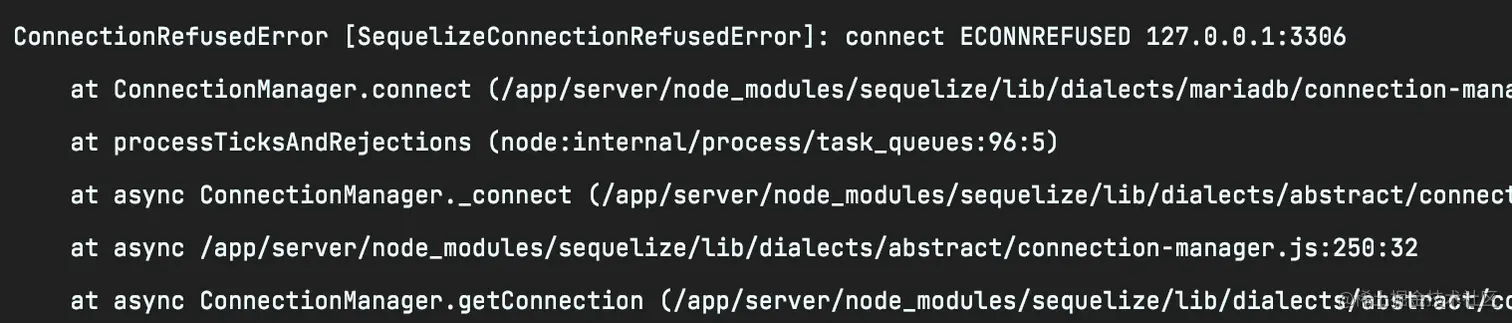 ConnectionRefusedError: connect ECONNREFUSED 127.0.0.1:3306