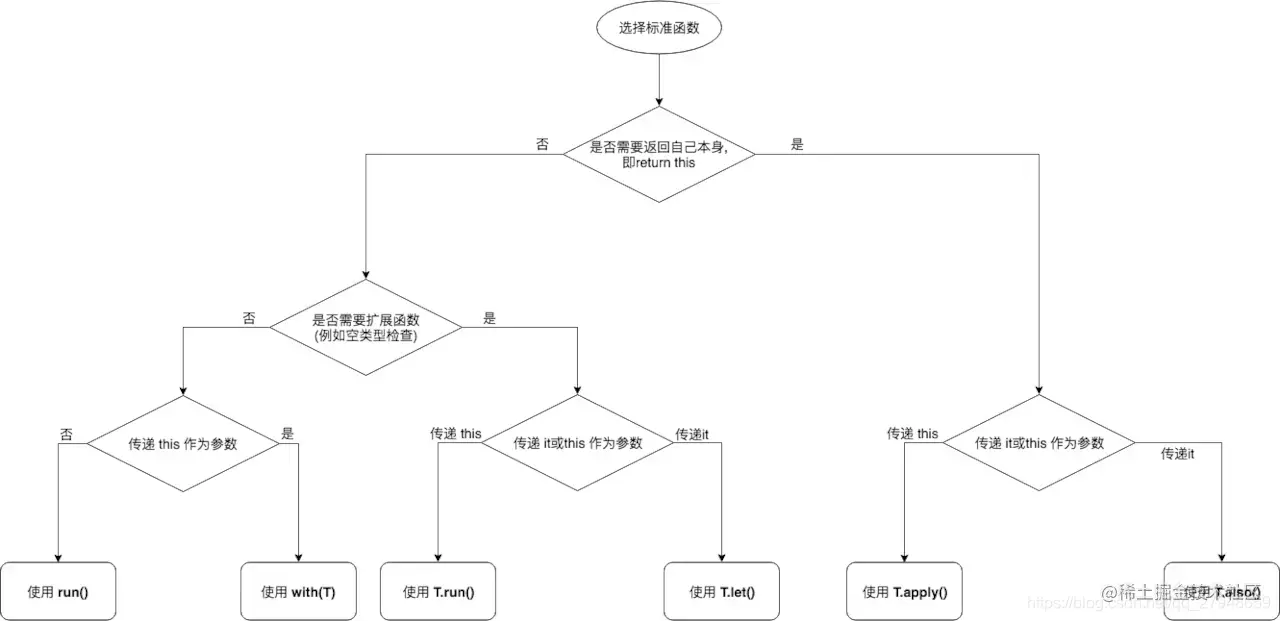 - 因为run函数是let,with两个函数结合体,准确来说它弥补了let函数在函数体内必须使用it参数替代对象,在run函数中可以像with函数一样可以省略,直接访问实例的公有属性和方法,另一方面它弥补了with函数传入对象判空问题,在run函数中可以像let函数一样做判空处理,适用于let,with函数任何场景。