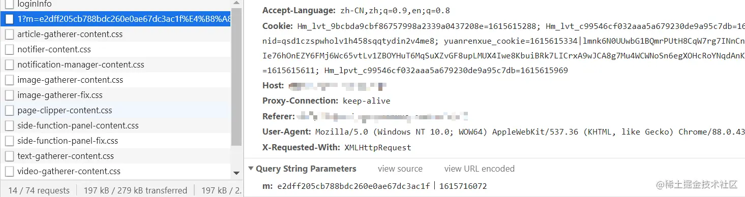 跳过 debugger,通过网络面板,找到我们需要分析的参数是下面这个请求的m参数