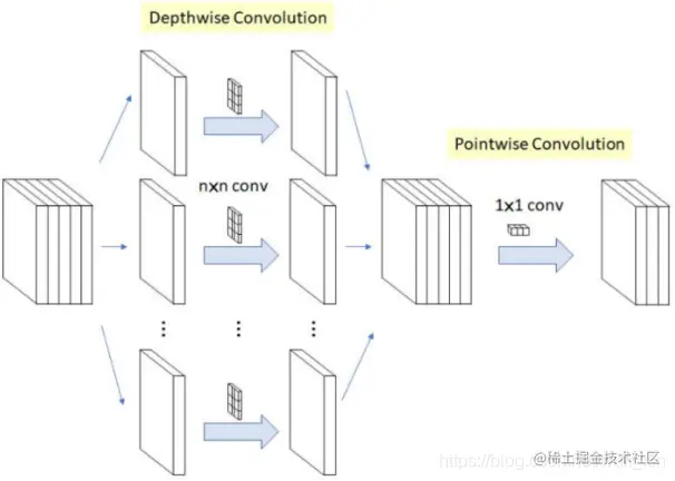 深度可分离卷积 = 深度卷积 + 逐点卷积