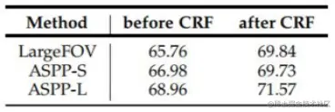 网络变形: LargeFOV:3×3卷积 + rate=12(DeepLab v1最好结果) ASPP-S:r = 2, 4, 8, 12 ASPP-L:r = 6, 12, 18, 24