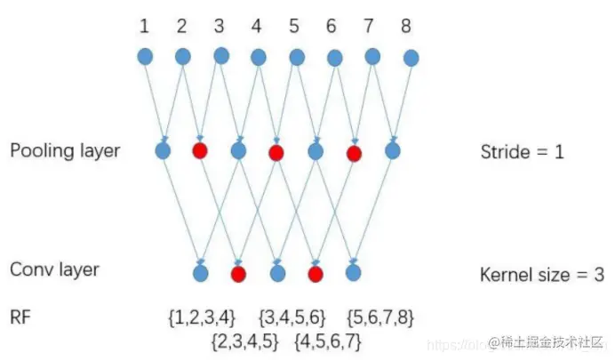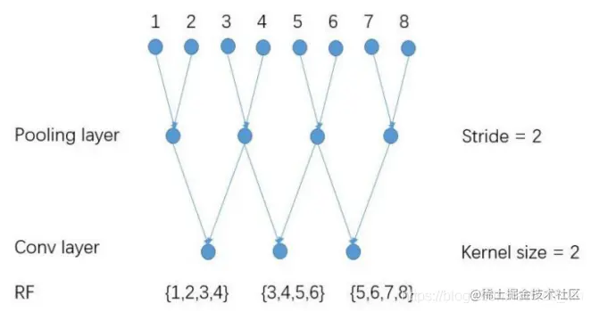感受域和步长以及卷积核之间的对应关系: