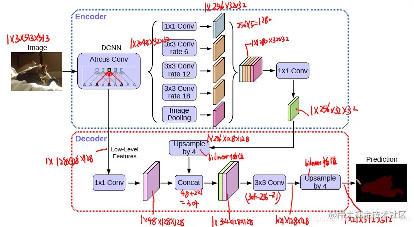 - 使用DeepLab v3作为编码器结构,输出与输入尺寸之比16(output_stride = 16)。