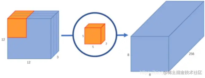 标准卷积: 标准输入图片尺寸为12×12×3,用1个5×5×3的卷积核进行卷积操作,会得到8×8×1的输出; 用256个5×5×3的卷积核进行卷积操作,会得到8×8×256的输出。 参数计算:256×5×5×3 = 19200