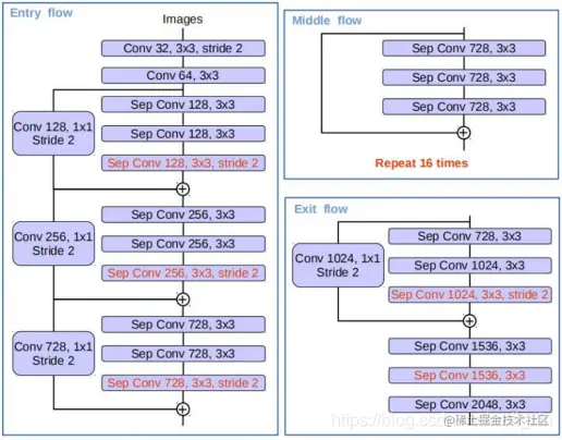 1.更深的Xception结构,原始middle flow迭代8次,微调后迭代16次。