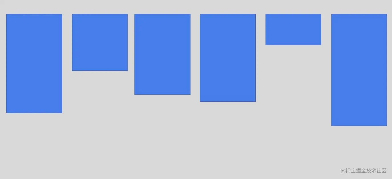 在移动端的大多数情况下,图片都是等宽不等高。如下图,我们在第一排排下了多个等宽不登高的元素
