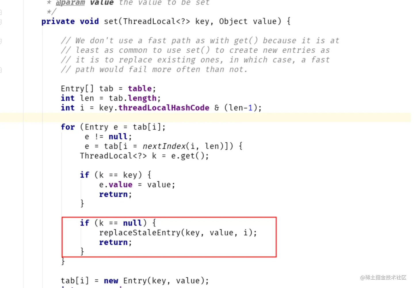 private void replaceStaleEntry(ThreadLocal<?> key, Object value,