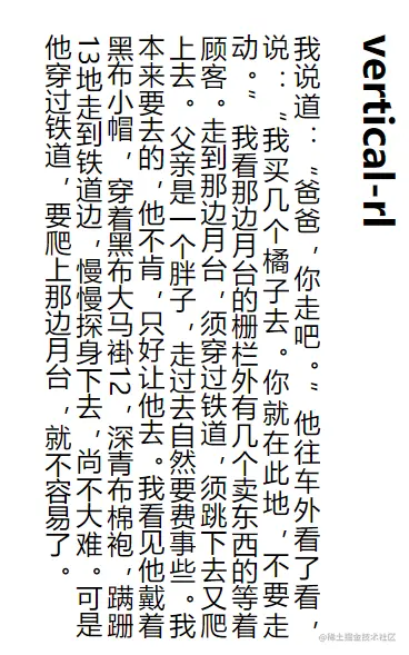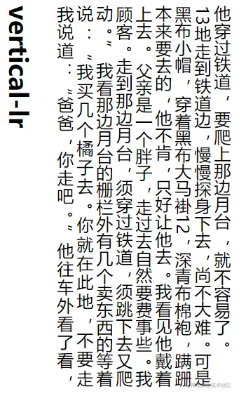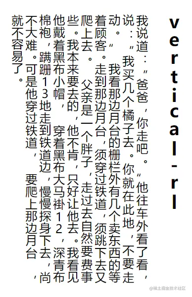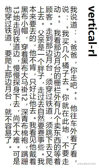 垂直书写模式下的所有文本都横向显示,就像在水平布局中一样,整行顺时针旋转 90°。。