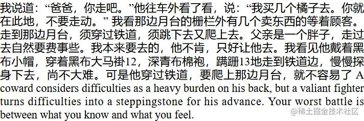 穿着黑布大马褂12,深青布棉袍,蹒跚13地走到铁道边,慢慢探身下去,尚不大难。可是他穿过铁道,