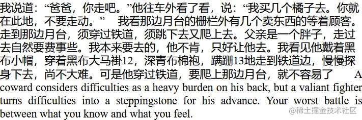 我说道:“爸爸,你走吧。”他往车外看了看,说:“我买几个橘子去。你就在此地,不要走动。”