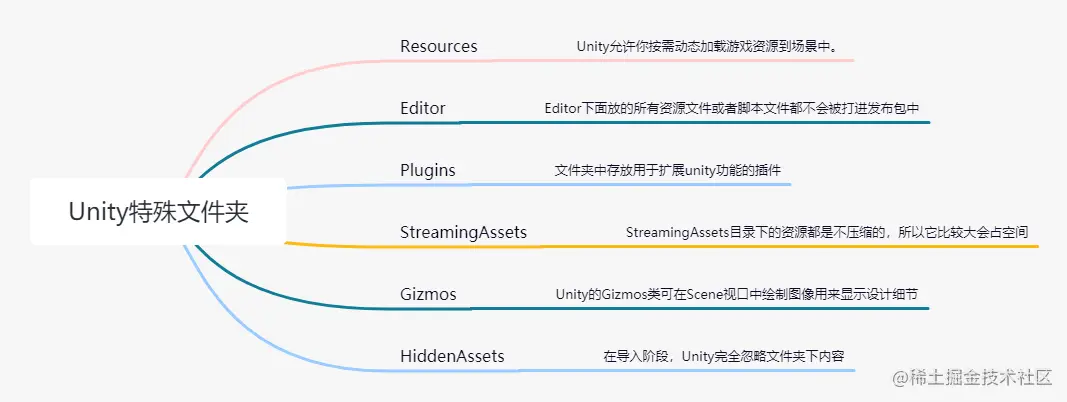 Unity允许你按需动态加载游戏资源到场景中。Resources.Load 函数可以加载项目中位于任何位置的 Resources 文件夹中的资源。你可以有多个Resources文件夹,不管是否是顶级文件夹都可以。在打包后无法写入数据。这个文件夹下不建议放太大的资源,不然打出来的包体太大。