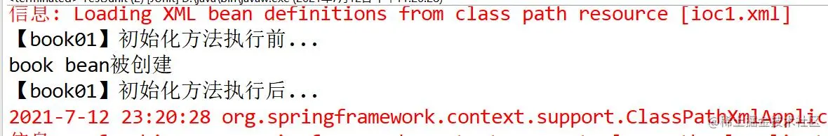 <bean id="book01" class="com.spring.beans.Book" destroy-method="myDestory" init-method="myInit"></bean>
