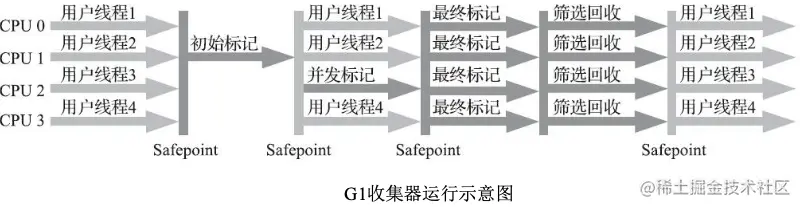分代收集,开创的基于Region的堆内存布局是它能够实现这个目标的关键 - 初始标记(Initial Marking):仅仅只是标记一下GC Roots能直接关联到的对象,并且修改TAMS 指针的值,让下一阶段用户线程并发运行时,能正确地在可用的Region中分配新对象。这个阶段需要 停顿线程,但耗时很短,而且是借用进行Minor GC的时候同步完成的,所以G1收集器在这个阶段实际 并没有额外的停顿。