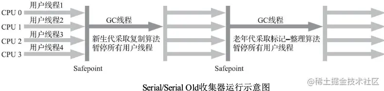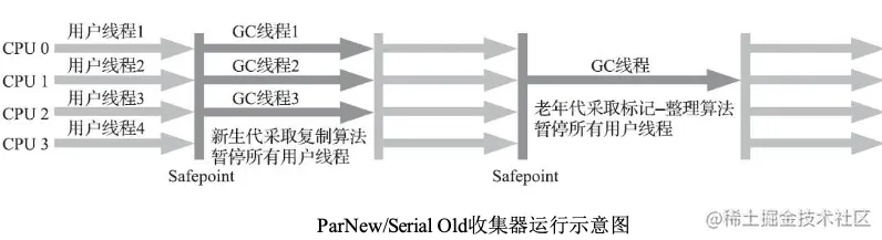 多条垃圾收集器线程之间的关系 - 说明同一时间有多条这样的线 程在协同工作,通常默认此时用户线程是处于等待状态。