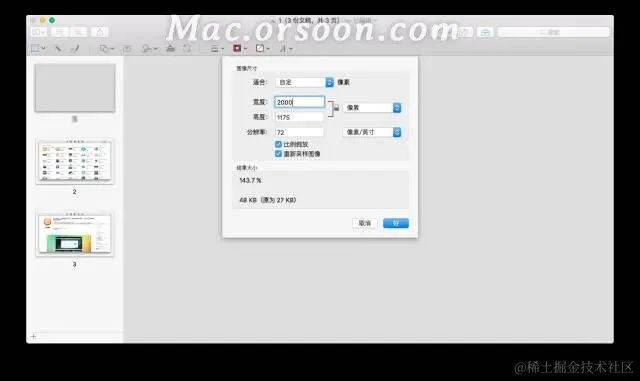 在 1 的画布上用「Command+A」「Command+X」全选图片并剪切,然后通过「工具-调整大小」来调整画布尺寸,调整成功后用「Command+V」将图 1 粘贴上去。