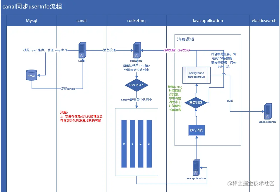 当然在同步的过程中可能存在的问题tom哥在图中也都标记出来了,canal是非常适合做无侵入的架构重构的中间件,具体使用方法,可以去canal官网查看教程。