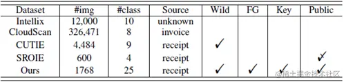 - 构建了一套基准数据集(WildReceipt),是SROIE数据量的两倍,而且训练集版式模板和测试集版式模板交叉很少,因此可以用来做些通用关键信息抽取任务的探索研究;