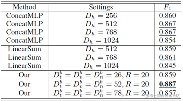 - 本文利用了视觉、语义特征,如何利用好两者数据,本文做了相关验证:特征融合方法的有效性(CONCAT、线性求和、克罗内克积),最终结果克罗内克积比其他两种特征融合方法高两个点左右,如下表格2-2所示: