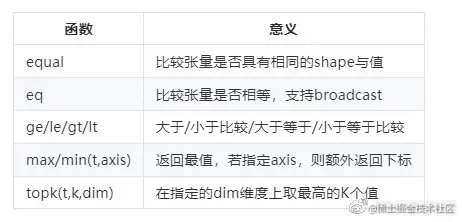 在量化交易中,我们一般会对股价进行比较。而Tensor张量同样也支持比较的操作,一般是进行逐元素比较。具体函数如下表: