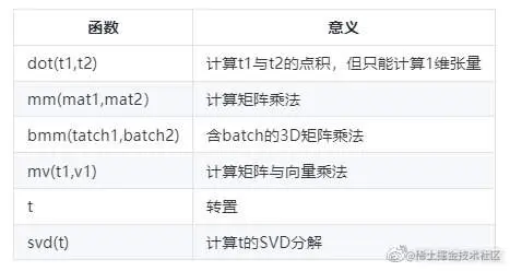 机器学习与深度学习中,存在大量的矩阵运算。与Numpy一样常用的矩阵运算一样,一种是逐元素相乘,一种是点积乘法。函数如下表所示: