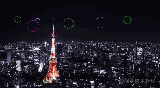 上面完成了一个通用的烟花颗粒类的实现,下面就开始烟花燃放的模拟循环过程:通过递归不断循地在背景中产生新的烟花。