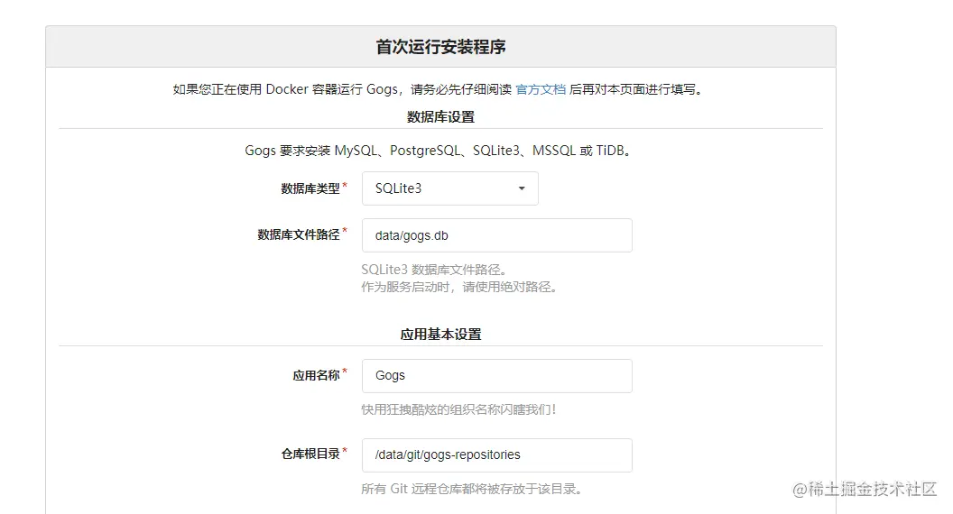 gogs docker启动后,网址一输入熟悉的页面就出现了