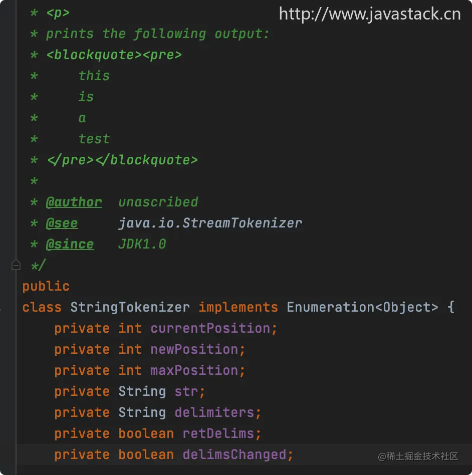 再来看 StringTokenizer 类的源码: