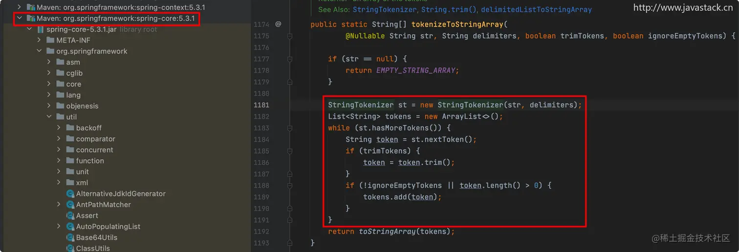 栈长在最新的 Spring 5.x 框架 StringUtils 工具类中就发现了 StringTokenizer 的使用身影:
