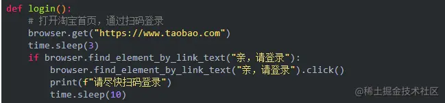 首先得登录淘宝,这里我们定义一个login函数